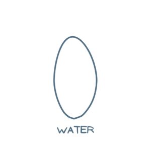 The Water element is representing Winter. We draw further inward, taking space to rest and retain for Spring. To hybernate. Water is the biggest circle as our bodies are water for more than 60%. Water contains, can take any form, its direction is North and the color is blue. The organs connected to the Water element are the Kidneys, which are seen as the essence of our being in TCM.